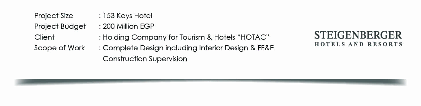Located at the unique intersection point between the Mediterranean Sea and River Nile; Steigenberger Lessan Hotel is developed as the first 4-star hotel in the city. Developed by the Holding Company for Tourism & Hotels “HOTAC”; the hotel building is developed to include Ground floor, 6 floors and Roof floor on a plot with area equals to 4,200 m2 with total built up area of 17,650 m2.