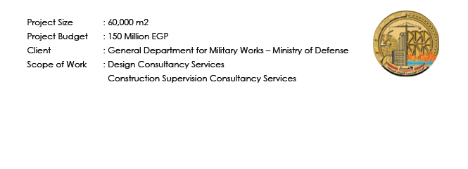 The Military Social Club is developed in 6th of October City on area of 60,000 sqm. The club includes Main Building, Administration Building, Multi-purpose hall, ballrooms, 4 squash courts, 3 tennis courts, 3 multi-use courts, health club, swimming pool, kids’ playground, food court area and mosque.